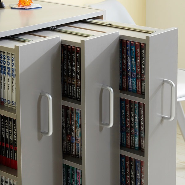 책의 위치는 자주 바꾸고 있다. 아무래도 책의 무게가 상당하기 때문에 칸막이 부분이 휘어질 수도 있기 때문에 매번 무게를 바꾸고 있다.